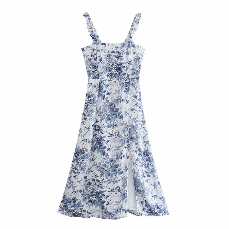 Retro Boho Printed Maxi Dress – Loose Fit Spaghetti Strap Summer Dress for Women”