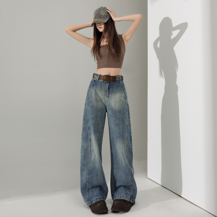 Retro Revival: Wide-Leg High-Waisted Jeans with Faded Wash