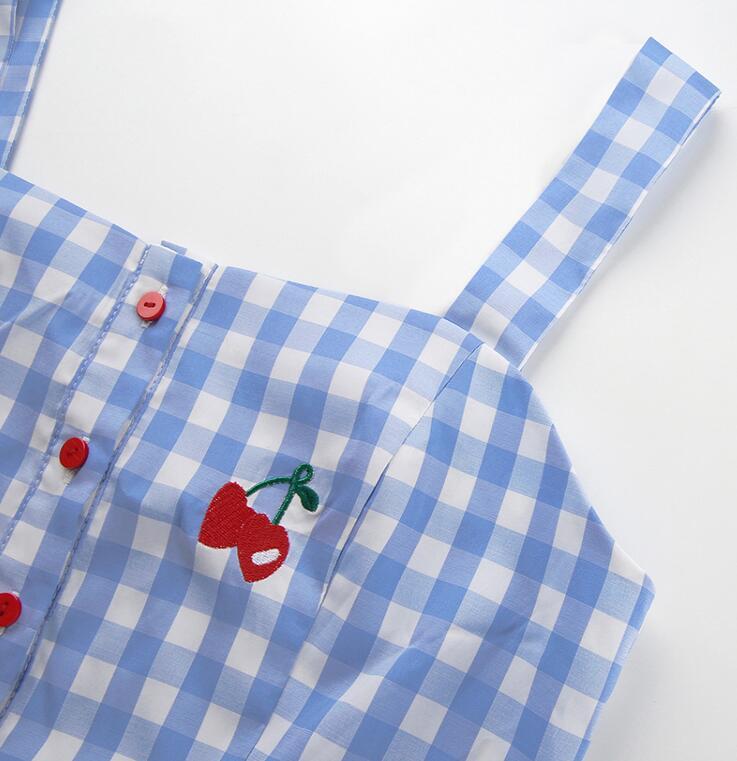 Sweet Gingham Crop Top with Cherry Embroidery & Ruffle Hem