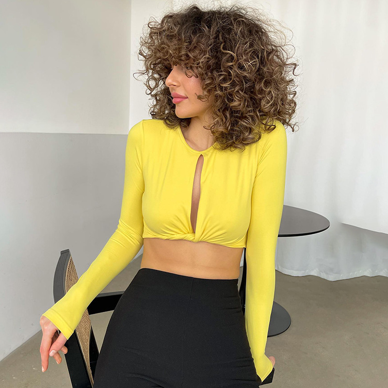 Trendy Slim Fit Crop Top – Hollow Out Round Neck Tee for Women’s Street Style