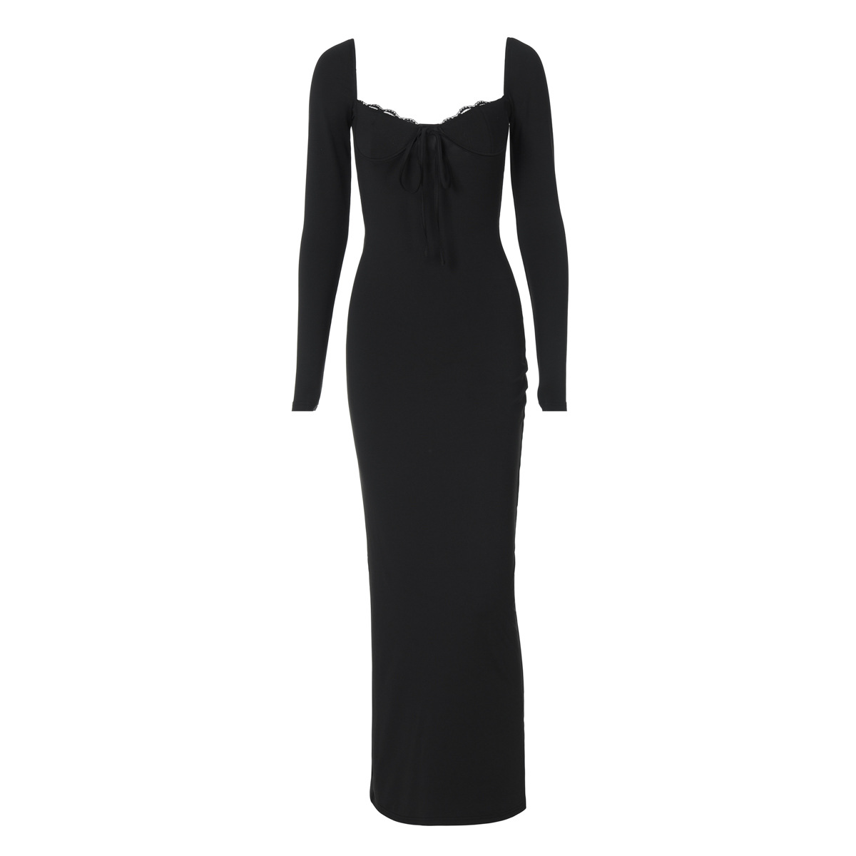 U-neck Backless Slim-fit Slit Hip-wrapped Long Sleeve Dress
